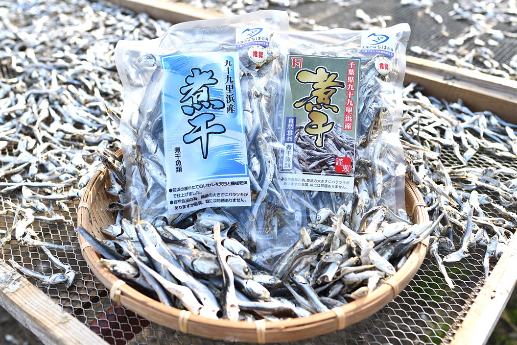 また、千葉県産の特徴でもある天日干しをすることでさらに、色、艶が良く旨味成分がぎっしりと詰まった「かねとの煮干し」が出来上がります。